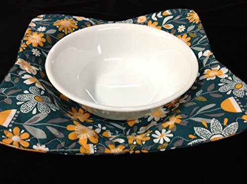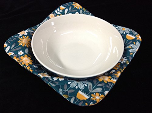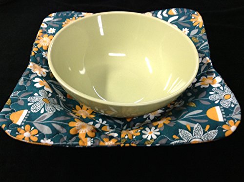 Product Description BOWL COZIES, for Wider, Lower Bowls Ready for some simple, yet major relief in the kitchen? A bowl cozy will prevent burned fingertips, and possible spills. *This size will fit up to about 8" bowl Larger whitish bowl shown in first picture is a Mainstay bowl measuring 7 1/4" across by 2 1/4" high. The next bowl is a green IKEA bowl that measures about 6 1/2" across and 2 5/8" deep) and the 3rd picture is a smaller Corelle bowl. You can see that this size would be usable on smaller bowls, but would be looser. These are great for grabbing hot dishes from microwave and carrying to counter or table, or for holding soup or ice cream bowls or just for adding a bit of fun and style to a serving dish. PROTECT THOSE LITTLE FINGERS from hot and cold! Choose a design to match your kitchen or one for each family member to fit their personality! The rounded corners are stylish and not as clumsy as pointy corners. Machine wash and dry warm. Made with 100% cotton fabric and cotton quilt batt. And, created with my passion for colors, fabrics, design and sewing. Listing is for 1 bowl cozy only, bowls not included. 0