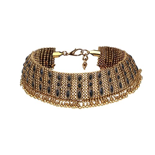 Women Punk Style Alloy Crystal Rhinestone Golden Chain Necklace Choker