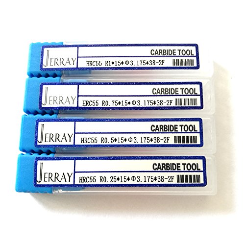 4pcs/package Assorted CNC 2D and 3D Carving R0.25 & R0.5 & R0.75 & R1.0 with 1/8" (3.175mm) shank Tungsten solid carbide Tapered Ball Nose End Mills and cone cutter HRC55 with coated