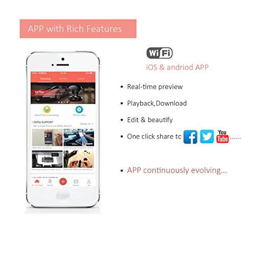 - Easy-To-Use: Remote snapshot button to capture picture/10S video conveniently; Beautify, edit, directly share to social networks; 330° rotatable lens can record not only outside the vehicle but also inside; Dual USB 2.1A car charger leaves one port can charge another mobile device rapidly; Continuously optimized firmware with new features by auto update;