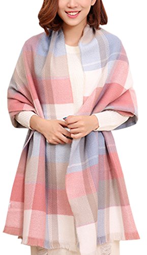 Title : Wander Agio Womens Scarves Warm Long Shawl Big Large Plaid Infinity Scarf Burrs Pink