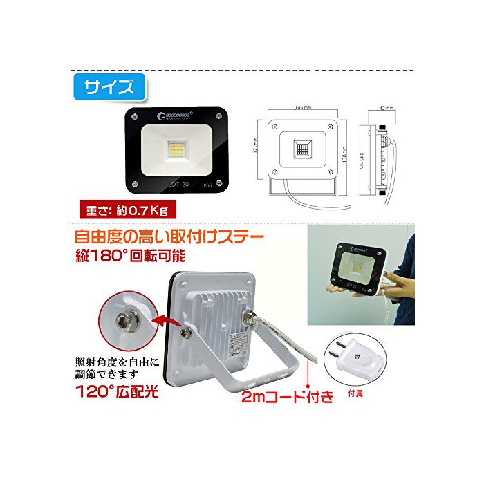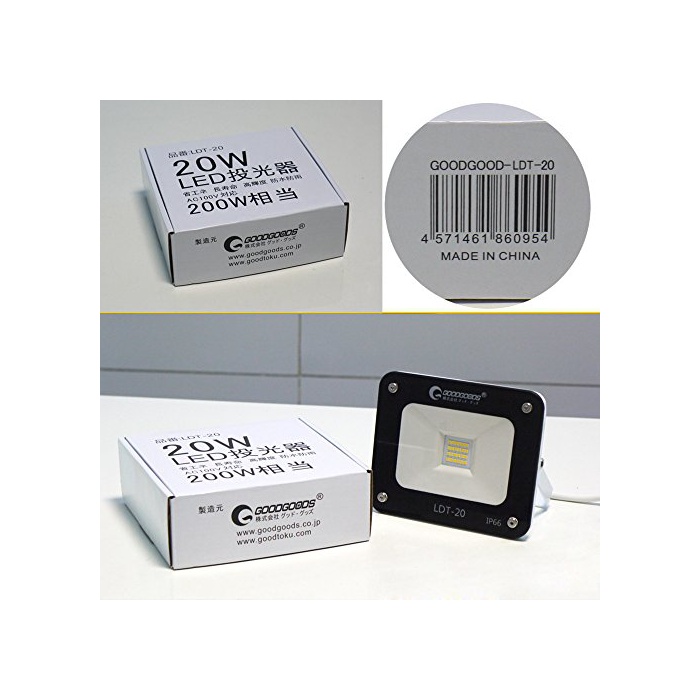 원본상품명: GOODGOODS LED投光器 20W 200W相 薄型 作業 光色 2600LM 角 防水 屋外照明 LDT-20