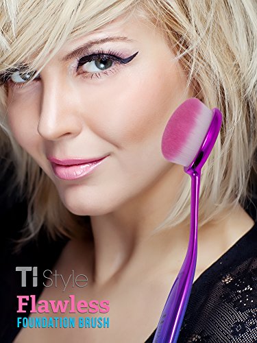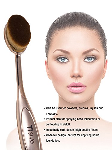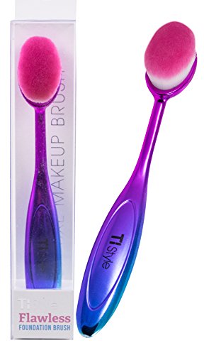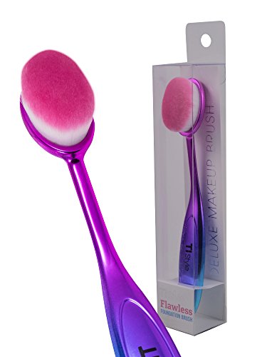 Large Oval Makeup Brush - Deluxe Ultra Soft Bristles & Large Brush Area - Perfect for Foundation, Concealer, Blush, Cosmetics, Cream, Powder - Look Gorgeous Now - by TI Style (Rainbow Chrome)