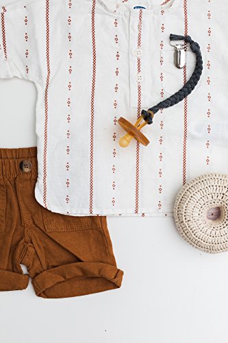 -. Binding : Baby Product -. Brand : Madeline's Box -. Feature : CPSC Certified Safe Product / Metal clips have a soft plastic insert to snap on and off easily & will not ruin clothing / 8 inches long & tested to ensure the perfect length / Works with pacifiers, teethers & any item you wish to keep off the ground / Each clip is hand made in the USA using extremely soft fabric soothing to your baby's skin -. IsAdultProduct : 0 -. Label : Madeline's Box -. Manufacturer : Madeline's Box -. ProductGroup : Baby Product -. ProductTypeName : BABY_PRODUCT -. Publisher : Madeline's Box -. Studio : Madeline's Box -. Title : Madeline's Box Softy Braided Pacifier Clip, Hand-Made in USA
