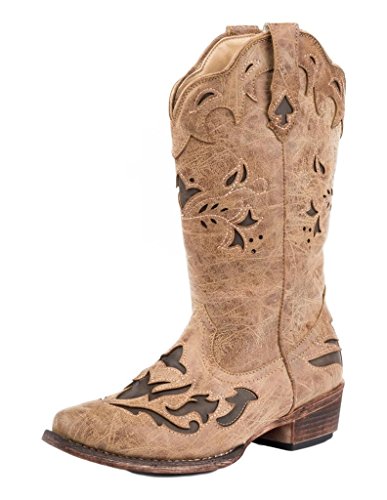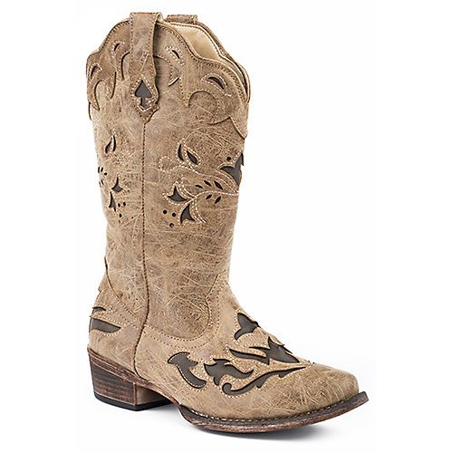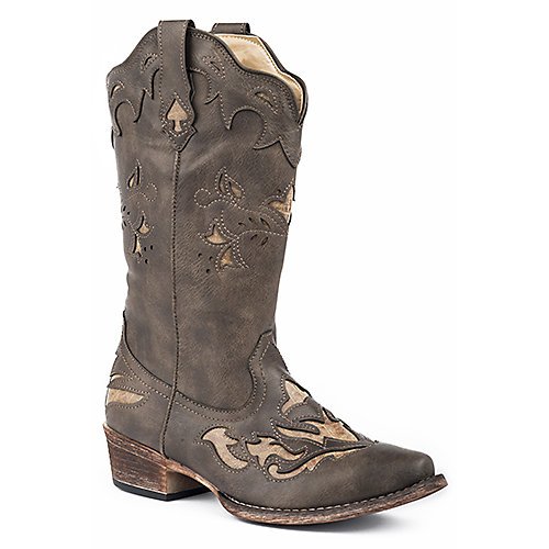 Studio : Roper Publisher : Roper Binding : Apparel Product Description The Roper Spade boot is an excellent choice for style, fit and comfort. It is made up of faux leather and has cutouts with faux leather underlays. It has a 12 inch shaft with a 1.5 inch heel. Padded comfort insole is added for extra support. 0