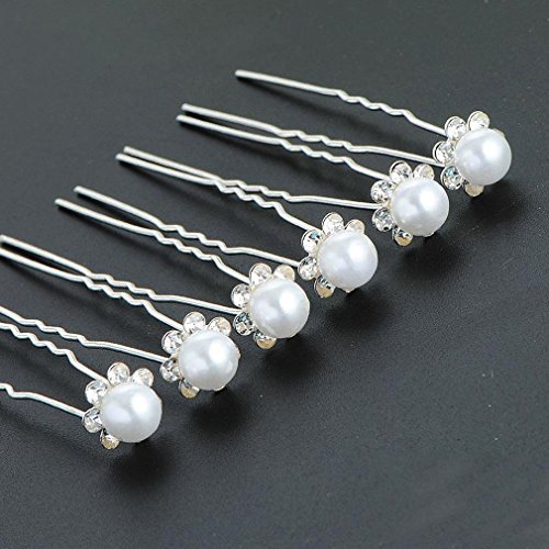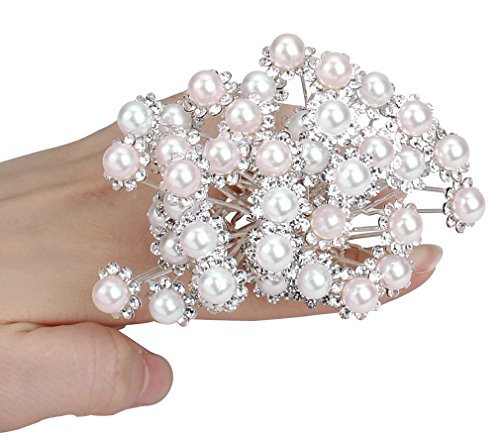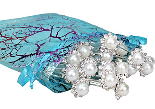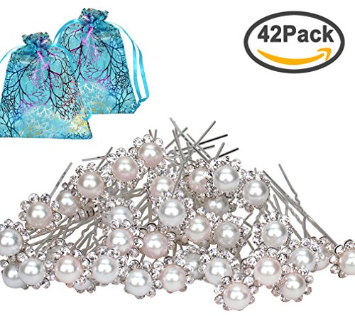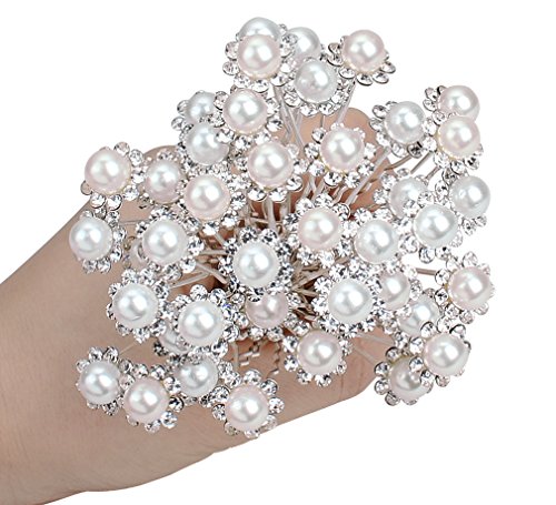 (Jaciya)/Styling Tools/Styling Accessories/DIRECT FROM USA/Jaciya 40 Pack Crystal Wedding Bridal Pearl Flower Hair Pins Clips with Two Jewelry Bags, White