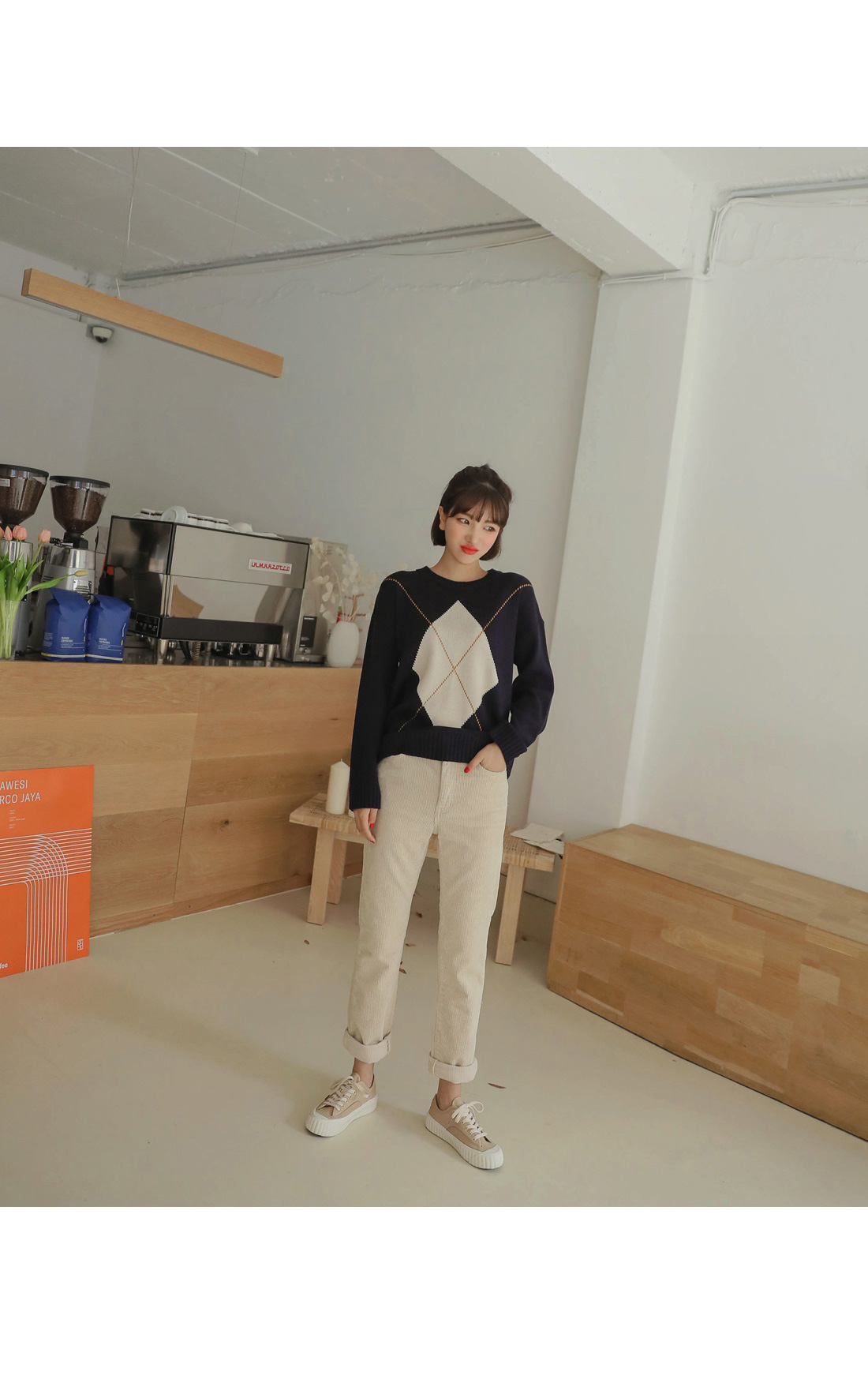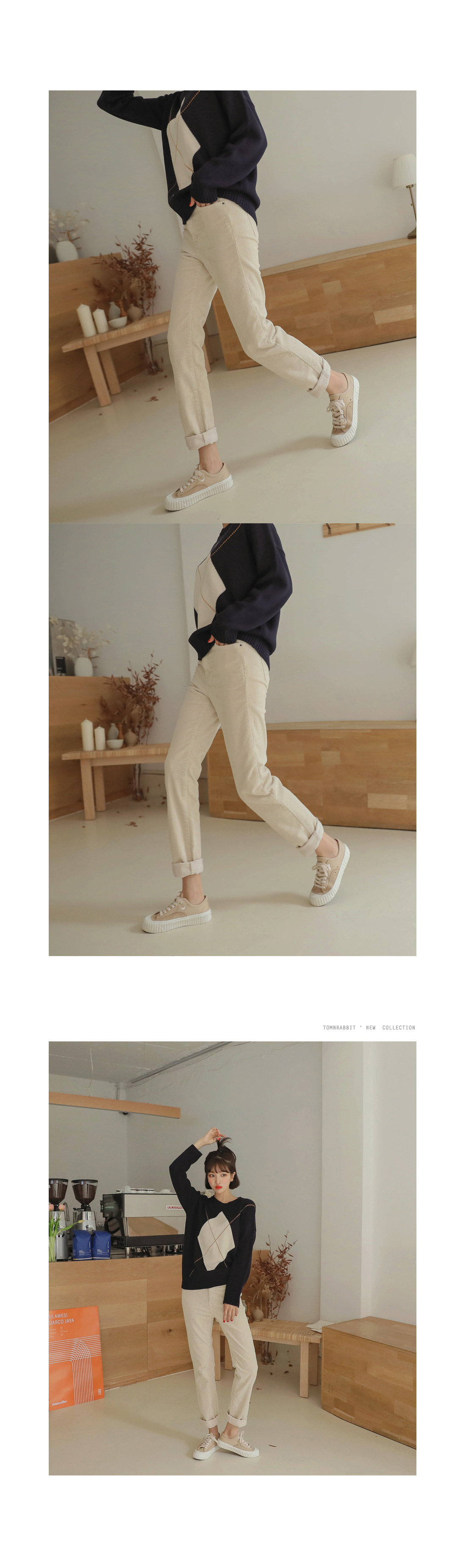 MD COMMENT 귀여운 느낌의 코듀로이 팬츠를 소개해드릴게요-F/W 시즌에 맞게 준비한 팬츠구요 베이직한 디자인으로 다양하게 매치하기 좋은아이템이구요약간의 텐션감으로 활동하는데 편하면서 하이웨스트 밑위길이로 길어보이는 레그라인을 연출해 드릴 팬츠에요-살짝 슬림하게 떨어지는 라인 반배기 팬츠로 하체 체형커버에 좋구요 다양한 상의와 매치하기에 좋은 아이템으로 얼른 초이스하세요!COLOR/SIZE 크림,진베이지S,MMODEL FITTING 크림/SDH - 167cm / 47kg / top S / bottom 25 / shoes 235