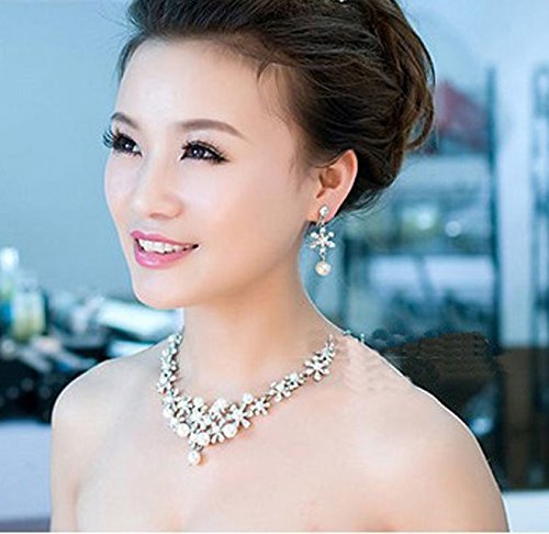 -. Title : (バハギア) Bahagia ( イヤリング + ネックレス パーティ用 お揃い 2点 セット + ネイルシール セット ) フラワー ゴージャス シルバー パール ビジュー ラインストーン 花 ブライダル ドレスアップ ジュエリー hs-en02