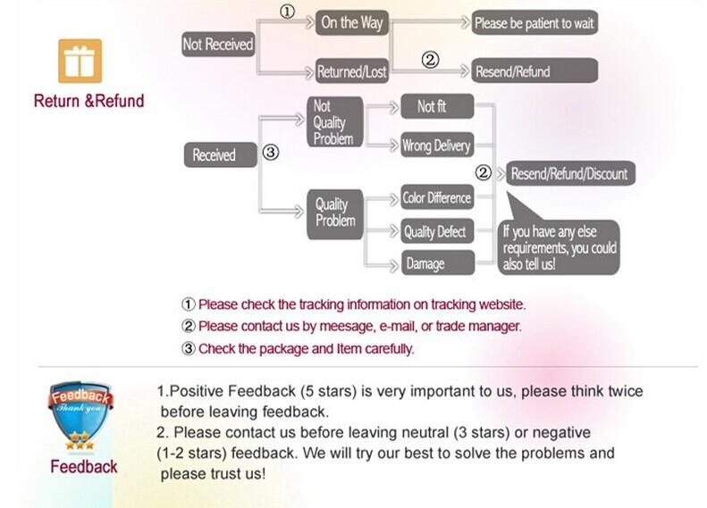 4.100% Satisfaction,if you can`t receive your items or get a different one,we`ll resend or make refund.