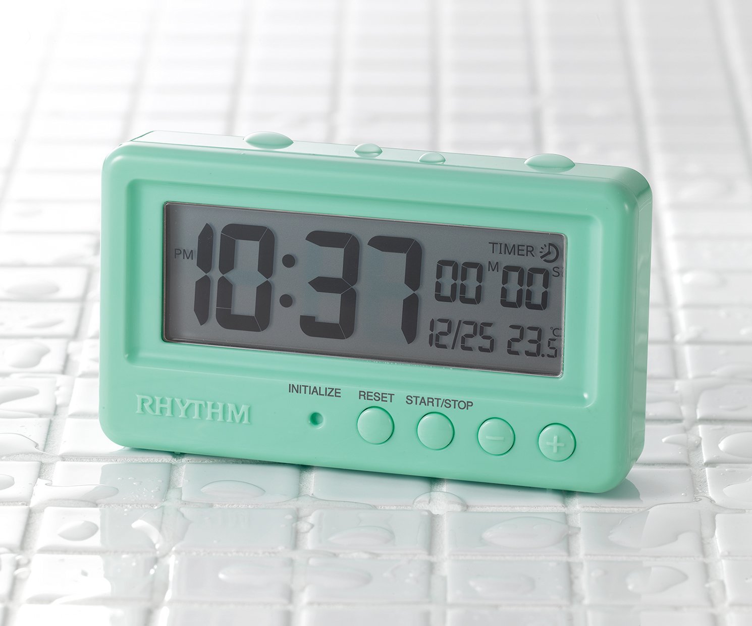 Waterproof digital watch with a "timer function" in the bathroom.