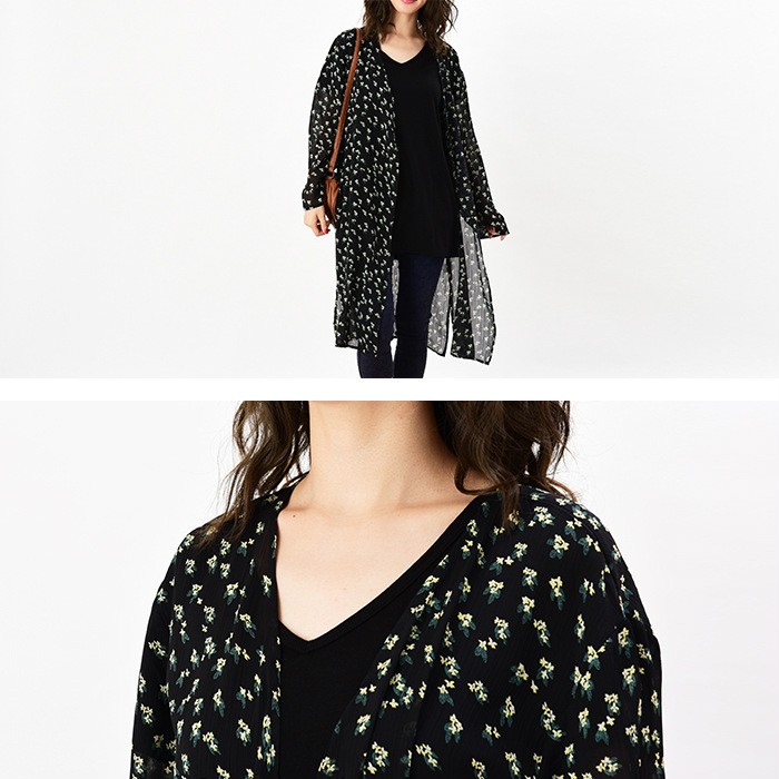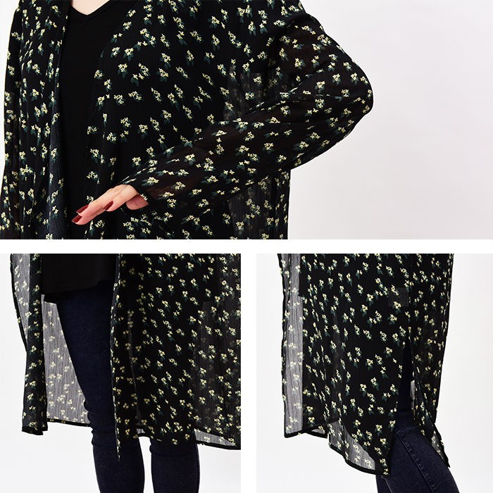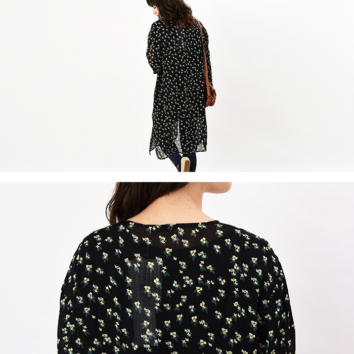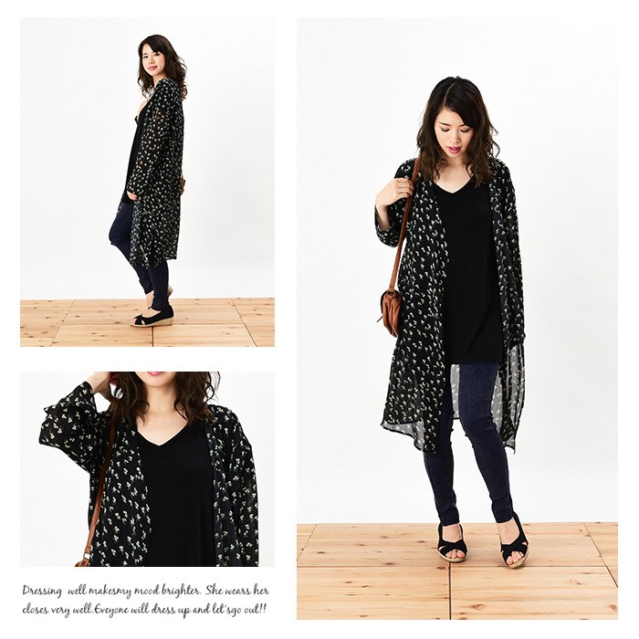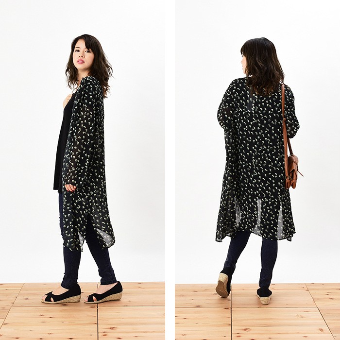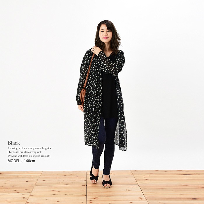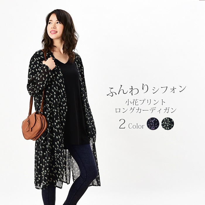 人気のロング丈はヒザまで隠れる丈感で、こなれ感たっぷりで流行りのシルエットです体型カバーもしっかりできてゆったりとストレスフリーな着心地が大人気なデザインです。可愛らしさ満点の小花柄は、シンプルで主張しすぎないので幅広い年齢層方に人気が高くコーディネートのポイントになること間違いなし♪シンプルなボトムスと相性抜群で1枚は持っておきたいカーディガンです。Mサイズ Lサイズ