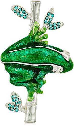 Napier Silver-Tone and Green Boxed Frog Brooches and Pin