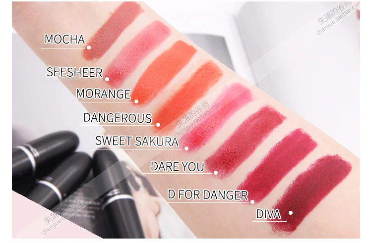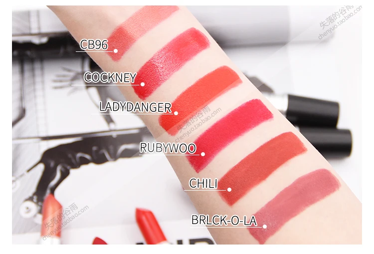 Color1:MAC makeup CHILI, COCKNEY, DARE YOU, RUBY WOO