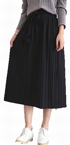 -. Title : sakura作(サクラサク)レディース エレガント カジュアル ファーリボン ウエストゴム ロング スカート ニット プリーツ