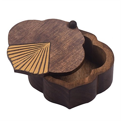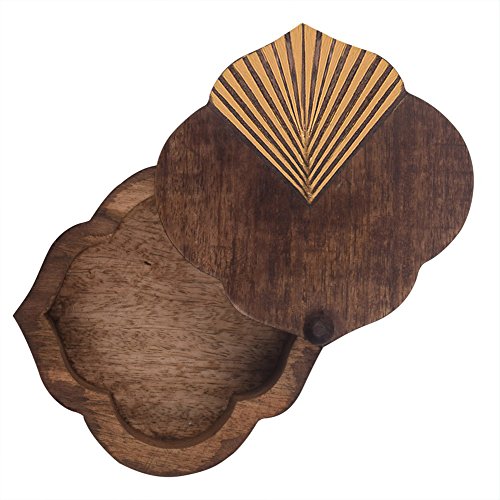 With a distressed brown finish the shape of this decorative box has been inspired from Mughal architecture. The antique gold finish in the fan-shaped design makes the box look eye-catchy.