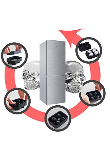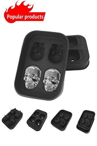 3D Skull Ice Cube Tray Mold,Makes Four Giant Skulls,Flexible Cube Food Grade Silicone,Perfect Halloween and Christmas Gifts,Maker in Shapes for Whiskey Ice and Cocktails, Black