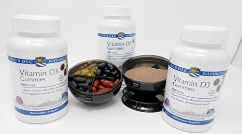 -. Feature : D3 NATURALLY: These delicious gummies, with the natural flavor of wild berries, are made from cholecalciferol, the natural form of vitamin D, preferred for optimal absorption. / OPTIMIZE YOUR HEALTH: Nordic Naturals Vitamin D3 Gummies provide 1000 I.U. of vitamin D in each serving. Vitamin D has been shown to perform a variety of functions in optimizing health. / FREE Viita Ball Storage Container- Perfect for storing and dispensing your daily dietary supplements and mixable powders. *Colors will vary. / GREAT TASTE + GOOD FOR YOU: Nordic Naturals Vitamin D3 Gummies comes in a delicious, natural wild berry flavor. Pectin based and gelatin free, these gummies contain no artificial coloring, flavoring, or preservatives. Support your calcium absorption and help promote healthy bones with these tasty treats! / NON-GMO VERIFIED: Nordic Naturals has always been at the forefront of sustainable and ethical practices in the natural products industry. Since our founding, we have been committed to using only non-GMO ingredients.