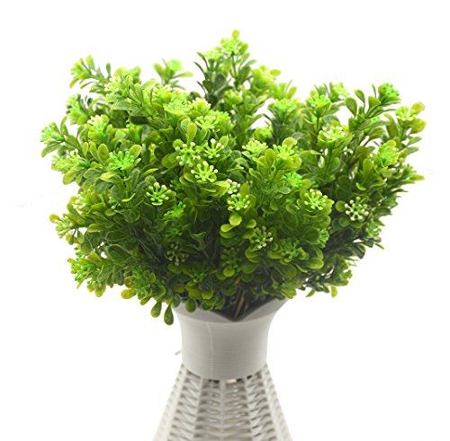 Lanldc 4 Bundles Artificial Plastic Bush Faux Grass Leaves Simulation Greenery Shrubs Home Garden Balcony Gallery Décor(White,MiL)