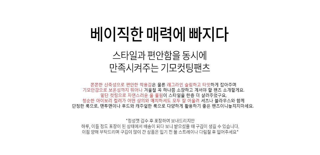 .같은 사이즈라도 체형에 따라 핏감이 조금씩 다를 수 있습니다.
