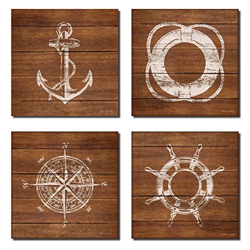 4 Nautical Anchor Compass Wheel and Buoy Set; Four 8x8in Poster Prints (Printed on paper not wood)
