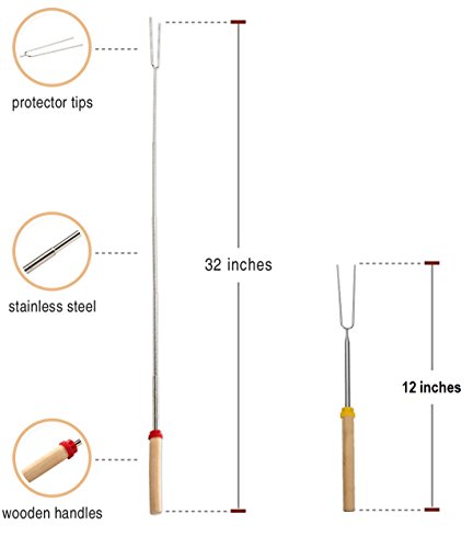 - SAFE FOR YOU AND YOUR FAMILY ~ Long extendable forks from 12-32" keep you and children a safe distance from any, bonfire pit, or campfire, To avoid smoke and instance heat from your face
