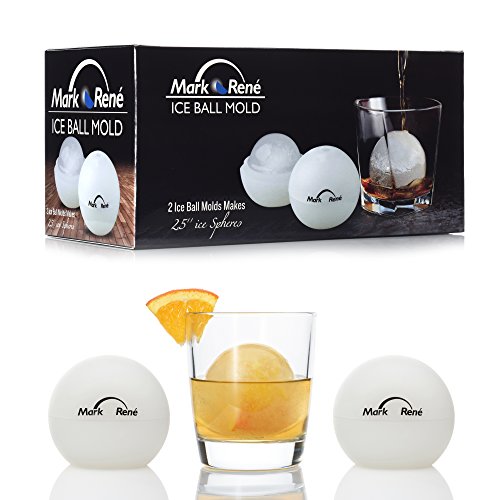 SET OF TWO: Mark René 100% Food Grade Silicone Ice Ball Mold (White), FDA Approved, BPA Free, Leak Proof!