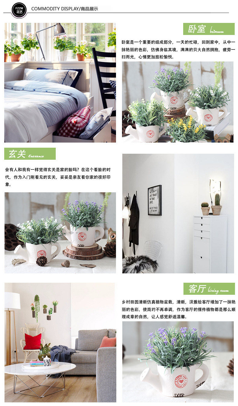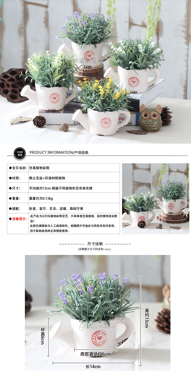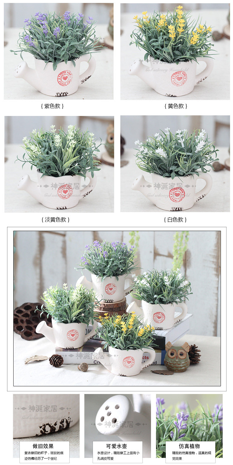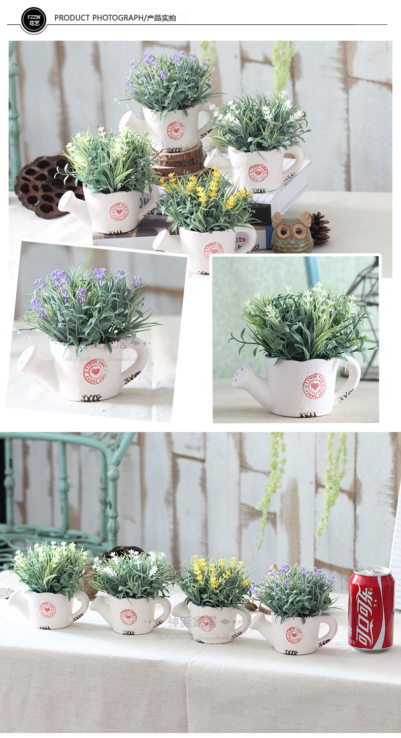 创意小清新洒水壶迷你小盆栽仿真花植物盆景家居办公室桌面摆件设