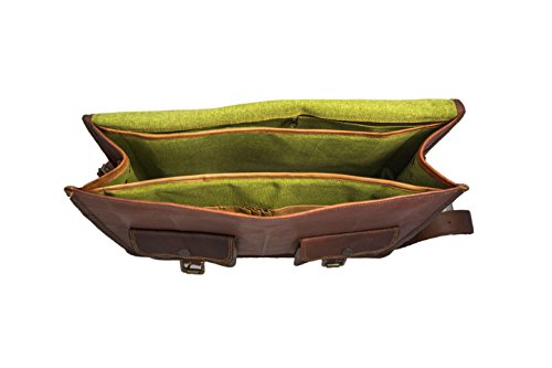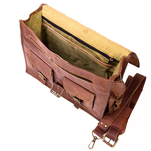 -. Feature : 2 Front Pockets with loopy lock, 2 Side Pockets with loopy lock, 1 Outer pocket with zipper, 1 Inner zipper pocket, 2 Internal Padded Compartments / Dimensions (in Inches): 15 (Length) x 11 (Height) x 4 (Depth) / Strong & Durable Brass Fittings & Buckles, Quality Zippers for both men and women. Ideal for office as well as school/college use and suitable for all occasions. / Featuring a well-structured body, an adjustable shoulder strap and Brass buckle closures. Unique and versatile leather bag complement any outfit. Carry on handle on the top. / **** Please read Size/Dimension of the bag carefully before you order****