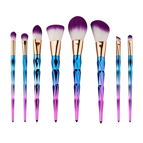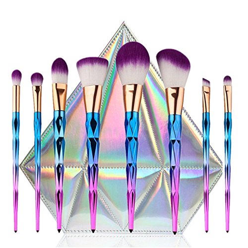 - COLORFUL UNICORN DIAMOND DESIGN: BESTOPE new 8Pcs makeup brushes designed with rainbow color and fashion style, Shine bright like a diamond,will give you new wonderful makeup experience.