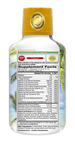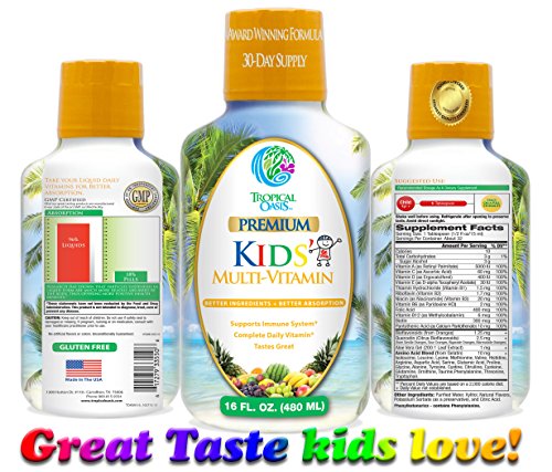 -. Binding : Health and Beauty -. Brand : Tropical Oasis -. EAN : 0788454267582 -. Feature : Great Tasting Liquid Formula Kids will love and it's easy to take! / 100% of the recommended daily intake (RDI) of 14 vitamins, 66 colloidal minerals and 23 amino acids / Contains essential vitamins and minerals kids most likely are not getting from their diets / Liquid vitamins are absorbed up to 80% more by the body when compared to pills/capsules . / *Gluten & Fructose Free * Zero Sugars *Low Carbs * Low Calories -. IsAdultProduct : 0 -. Label : Tropical Oasis -. Manufacturer : Tropical Oasis -. MPN : 33550 -. PartNumber : 33550 -. ProductGroup : Health and Beauty -. ProductTypeName : HEALTH_PERSONAL_CARE -. Publisher : Tropical Oasis -. Studio : Tropical Oasis -. Title : Premium Children's Liquid Multivitamin & Superfood - 100% Daily Value of 14 Vitamins, 66 Minerals and 23 Amino Acids for Kids Ages 4+. Great Tasting, Non-GMO, Sugar Free - Max Absorption! - 32 Serv. -. UPC : 788454267582