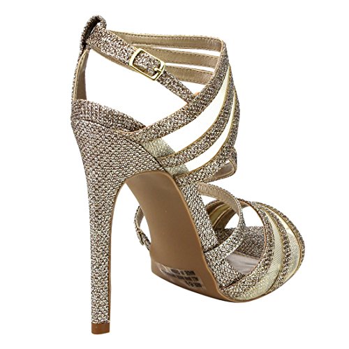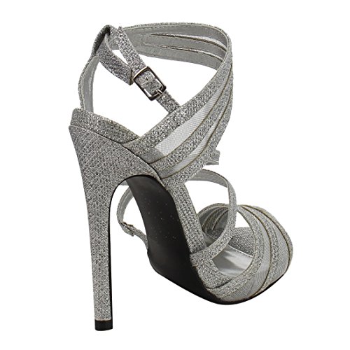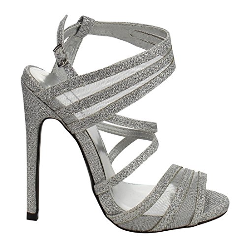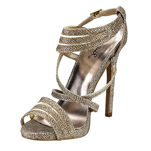 QUPID FG33 Women's Glitter Strappy Mesh Slingback Party Dress Sandals