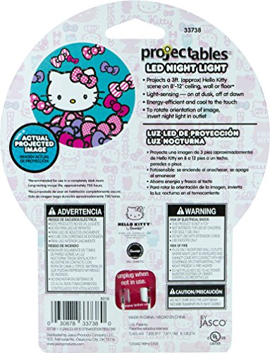 Transform your child's room with this Projectables night light featuring hello Kitty! the Projectables LED night light provides a soothing guide light while projecting a colorful hello Kitty image on the wall, ceiling, or floor. It uses light-sensing technology to turn on at dusk and off at Dawn. Long-life, energy-efficient leds are cool to the touch making this night light safe for any room in your home. It's perfect for kids of all ages.Feature