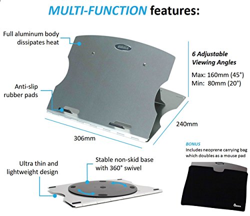 Aidata LHA-3 LAPstand Aluminum Portable Laptop Ultrastand; Elevate your notebook to an optimal angle and height; Adjustable platform with 6 viewing angles: 20°, 22.5°, 25°, 35°, 40° and 45°