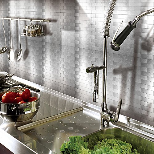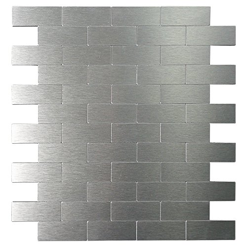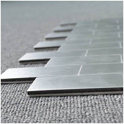 Art3d 10-Piece Peel and Stick Bathroom/Kitchen Backsplash Tile, Silver Brush Metal Brick