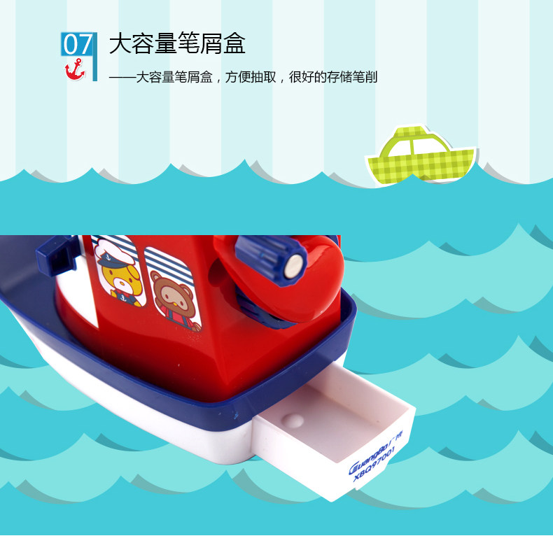 广博海军船铅笔刀省力防滑大容量笔屑盒削笔器时尚学生文具转笔刀