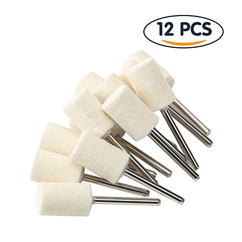 Shintop 12pcs Felt Point Polishing Tool Wool Felt Buffing Mounted Point (Cylindrical, White)