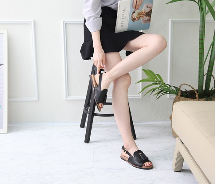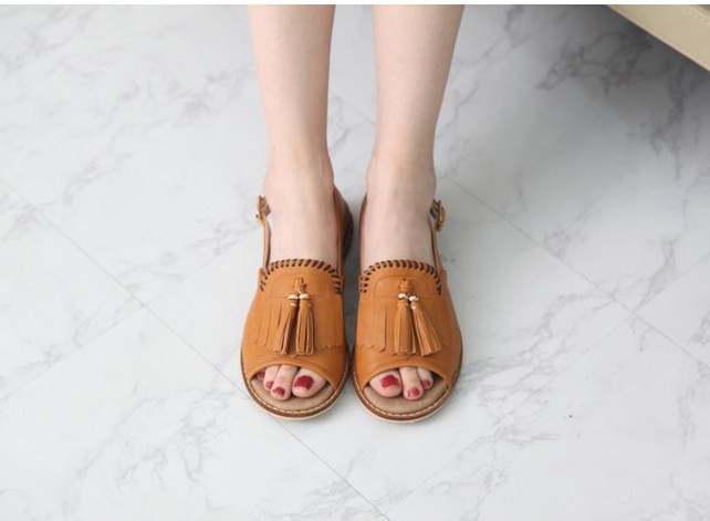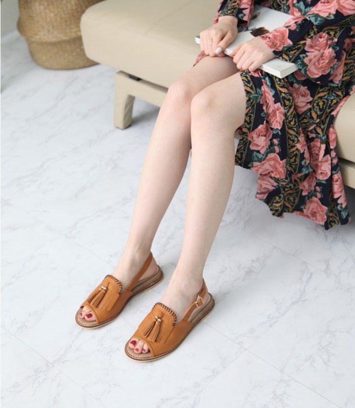 商品名:サンダル レディース ペタンコ タッセル フラットヒール スリングバック 2018 夏 ファッション 靴 婦人靴