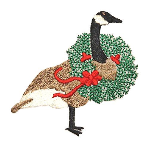 -. Title : ID #8080 Christmas Goose & Holiday Wreath Embroidered Iron On Applique Patch