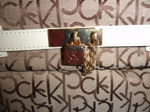 -. Title : Women's Calvin Klein Purse Handbag Keylock Crossbody Khaki/Brown/Off-White