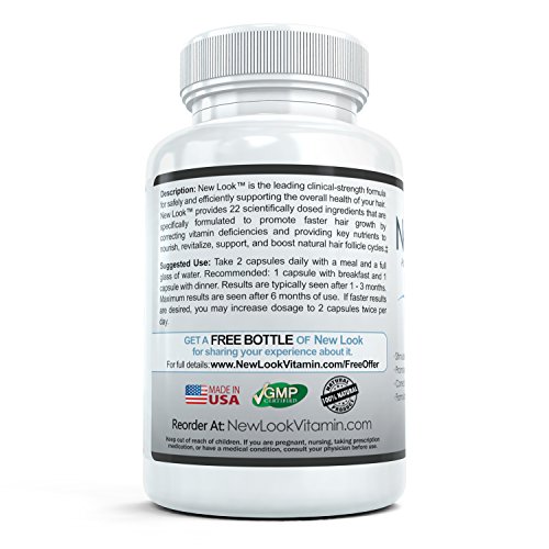 NATURAL HAIR REVITALIZATION: New Look provides the necessary vitamins your body needs by utilizing ingredients that are known to revitalize and strengthen your hair, making it the top-rated hair growth pill on the market. It features 22 clinically researched ingredients designed to stimulate and regenerate your hair without messy oils, expensive procedures or dangerous chemicals.