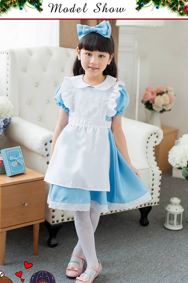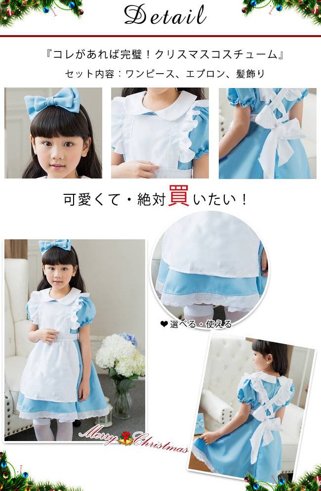 クリスマス コスプレ 子供 女の子 メイド服 かわいい ブルー ジュニア キッズ 子ども コスチューム 衣装 仮装 変装 メイド 服 セットアップ パーティーグッズ イベント用品 xmas Christmas cos