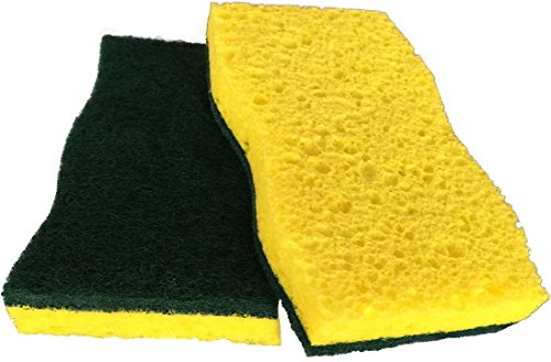- Heavy duty green scouring pad with absorbent yellow cellulose sponge