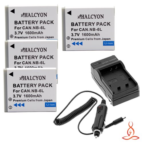 Four Halcyon 1600 mAH Lithium Ion Replacement Battery and Charger Kit for Canon PowerShot SX500 IS Digital Camera and Canon NB-6L