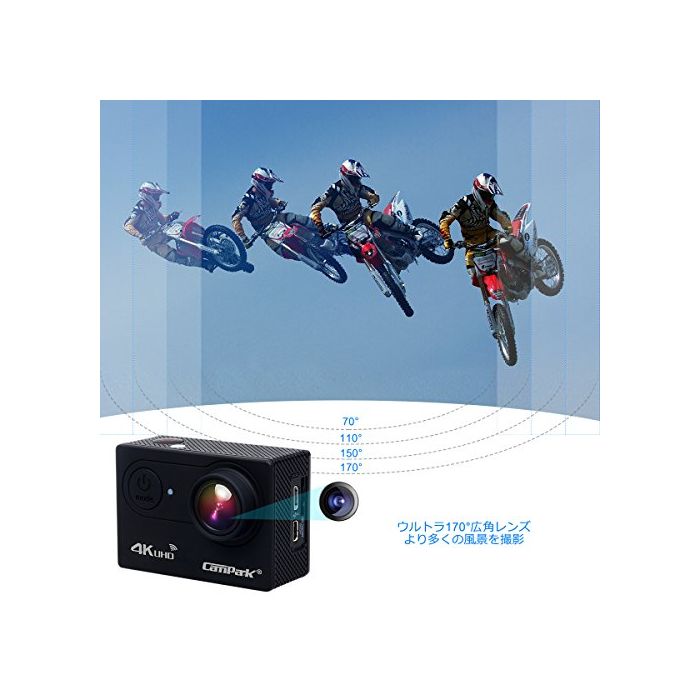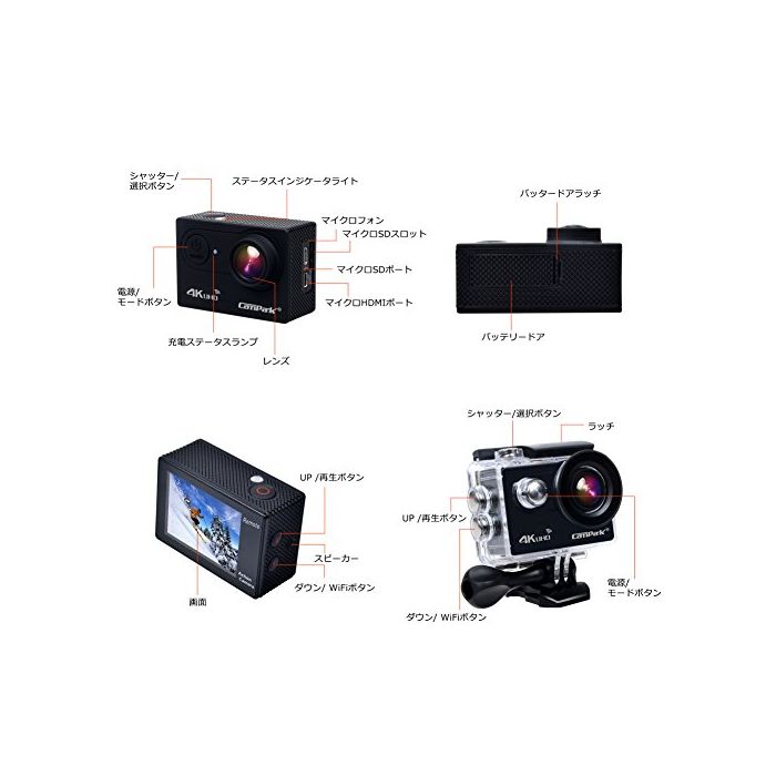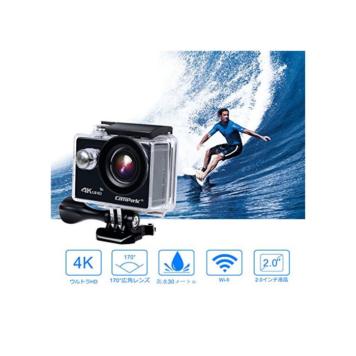 원본상품명: CamparkACT73R 4K アクションカメラ 2.0インチ液晶、170°角度の防水スポツカメラ WIFIとリモコンを付き、ヘルメット/ダイビング/自車/車などに取り付け可能(一年の保を