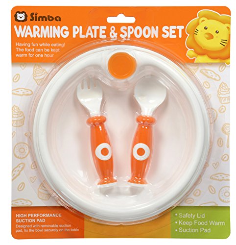 -. Binding : Baby Product -. Brand : Simba -. Color : Green -. Feature : Pour warm water to keep the food hot longer / Suction pad to prevent baby tipping over plate / Help babies learn self-feeding / Lid can double as an extra plate for snacks or fruits. / Economically designed fork and spoon are easy for toddlers to grip -. Label : Simba -. Manufacturer : Simba -. MPN : S9603 -. NumberOfItems : 1 -. PackageQuantity : 1 -. PartNumber : S9603 -. ProductGroup : Baby Product -. ProductTypeName : BABY_PRODUCT -. Publisher : Simba -. Studio : Simba -. Title : Simba Warmer Bowl and Cutlery Set