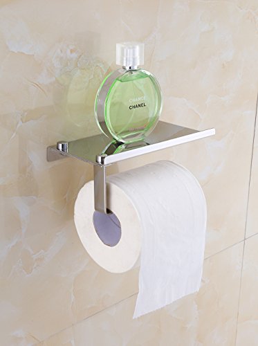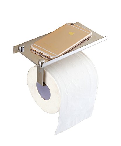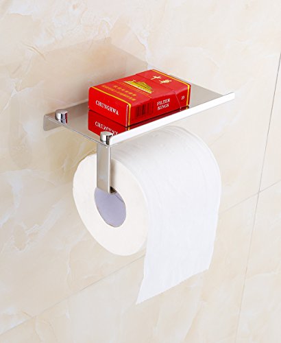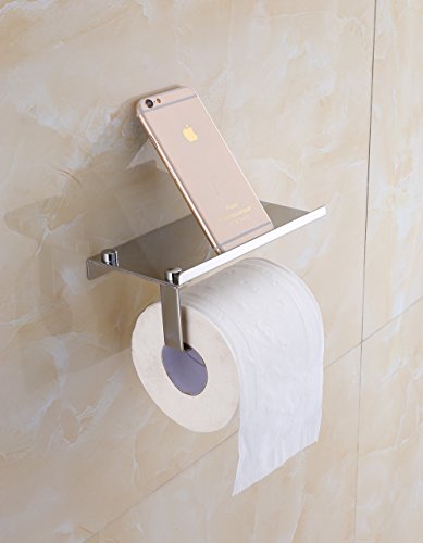 Wall Mount Toilet Paper Holder - XFOX SUS304 Stainless Steel Bathroom Tissue Holder with Mobile Phone Storage Shelf - Mirror Polishing Material