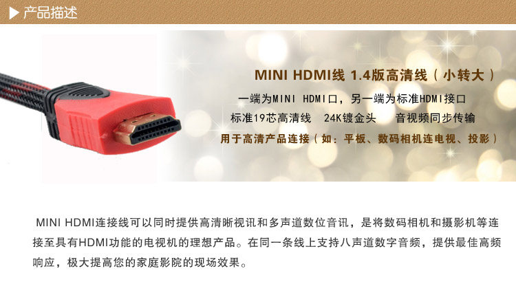 please pay attention to the use of methods: this line is to bemigrated to a standard definition camera mini hd interfaceinterface on (such as camera transferred to tv or pc monitor)