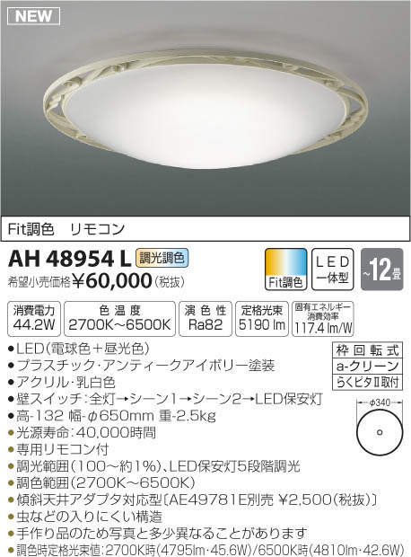 ●調色時定格光束値:2700K時(4795lm・45.6W)/6500K時(4810lm・42.6W)