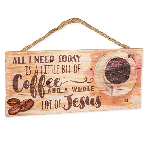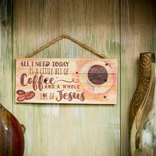 All I Need Today is Coffee and Jesus 5 x 10 Wood Plank Design Hanging Sign