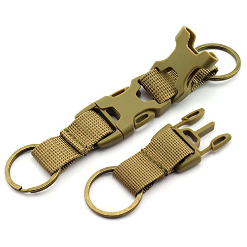 -. Title : HJ Garden MOLLE Clip Gear Key Ring Outdoor Quick Release Buckle Keychain Camping Hanger Tool Tactical Military Backpack Accessories 3 Rings Khaki Molle Webbing Clips